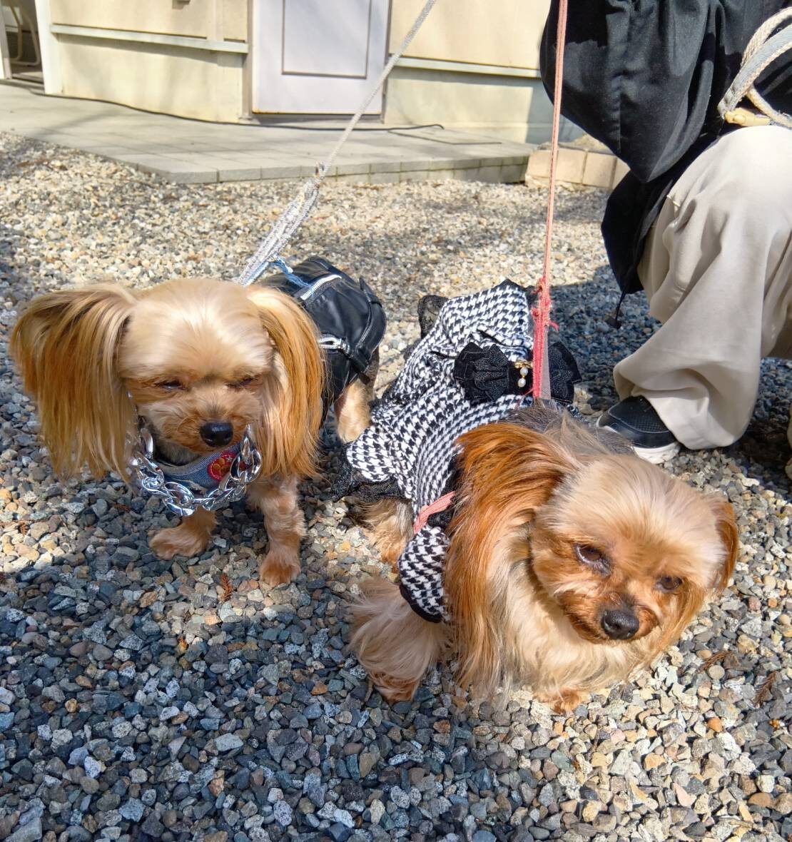 3月1日(日) 大安寺動物霊苑に、 お洒落なワンちゃんがお参りに来てくださいました。 クロちゃんとチーちゃんです。