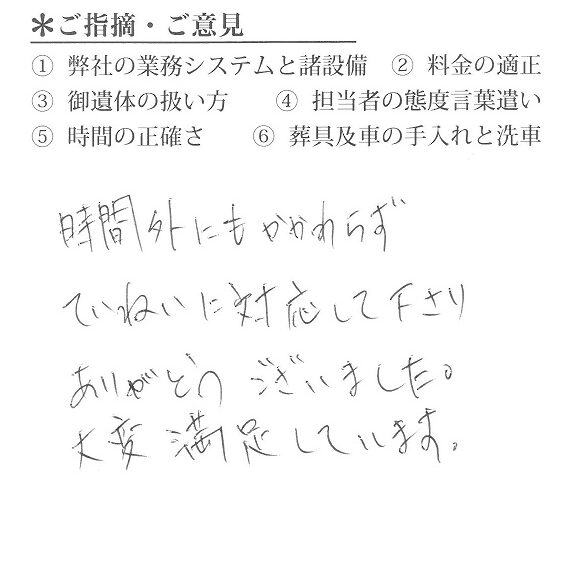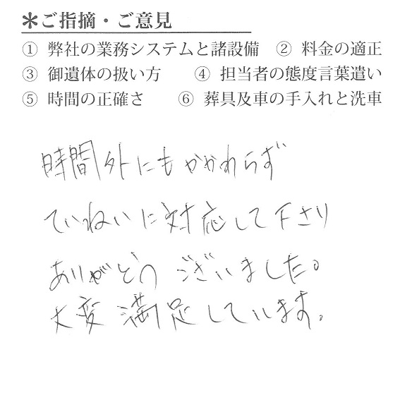 ②遺体の扱い方、言葉遣いも問題無しでした。