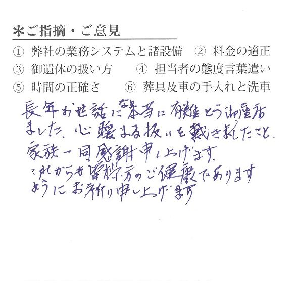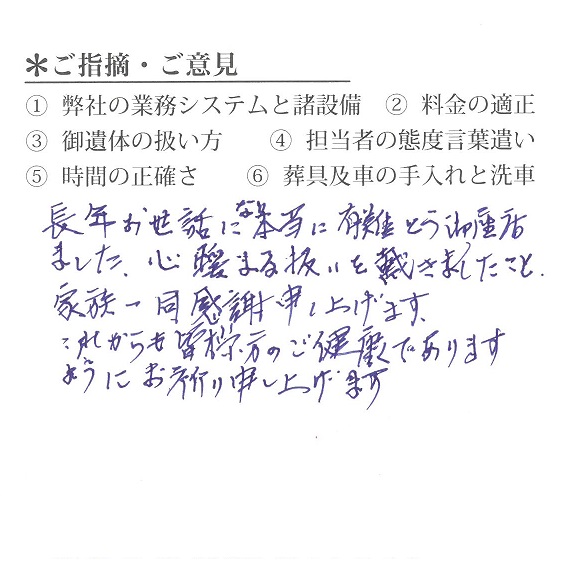 長年お世話にり本当に有難とう御座居